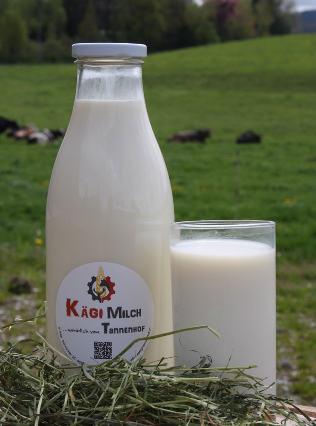 Entdecken Sie unsere feine und gesunde Tannenhof-Milch, die Sie bei uns auf dem Hof direkt vor Ort 24h/7 Tage die Woche – das ganze Jahr hindurch – frisch abzapfen können. Bringen Sie Ihr eigenes Gebinde mit oder machen Sie Gebrauch von unseren praktischen Milchpfandflaschen.